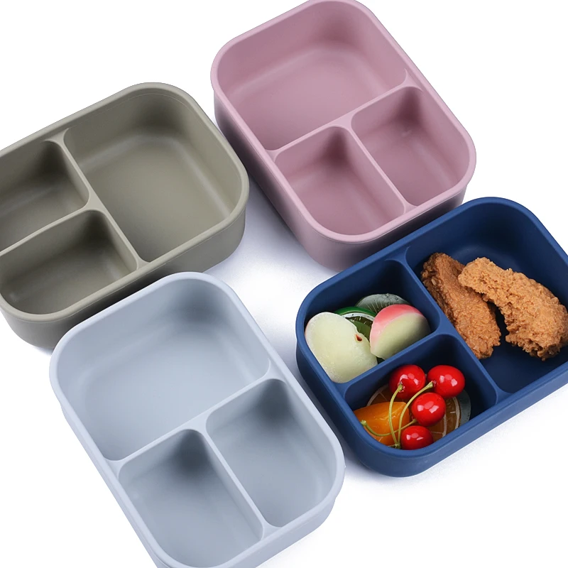 baby products 2023 trending Lunch Box Bento Silicone Kids Silicone Food Storage Lunch Box With 3 Dividers