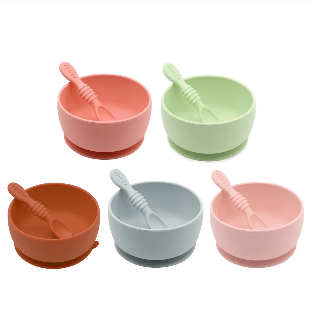 Eco-friendly Non-toxic Toddler Strong Suction Bowl Kids Dinner Plate Feeding Spoon Set Suction Silicone Plate Baby