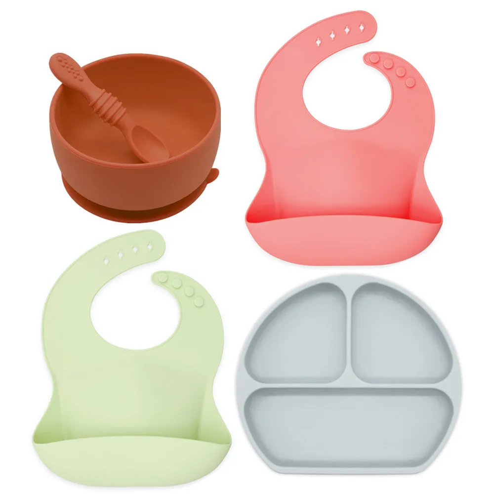Auzen Free Combination Reusable Food Grade Set of 6 Silicone Baby Feeding Bowl Plate Spoon
